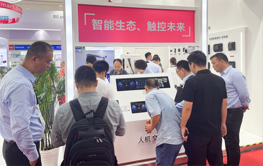此外最为抢眼的还得数人机交互区域,最新的智能座舱系列产品、显控一体机等设备,吸引众多客户驻足体验互动,设备不仅可实现上电即用,并且环境可靠性高,适用于各种恶劣环境,再配合智能按键面板以及电源管理模块,可拓展更多用户自定义功能,为客户量身打造多元化的智能座舱场景。